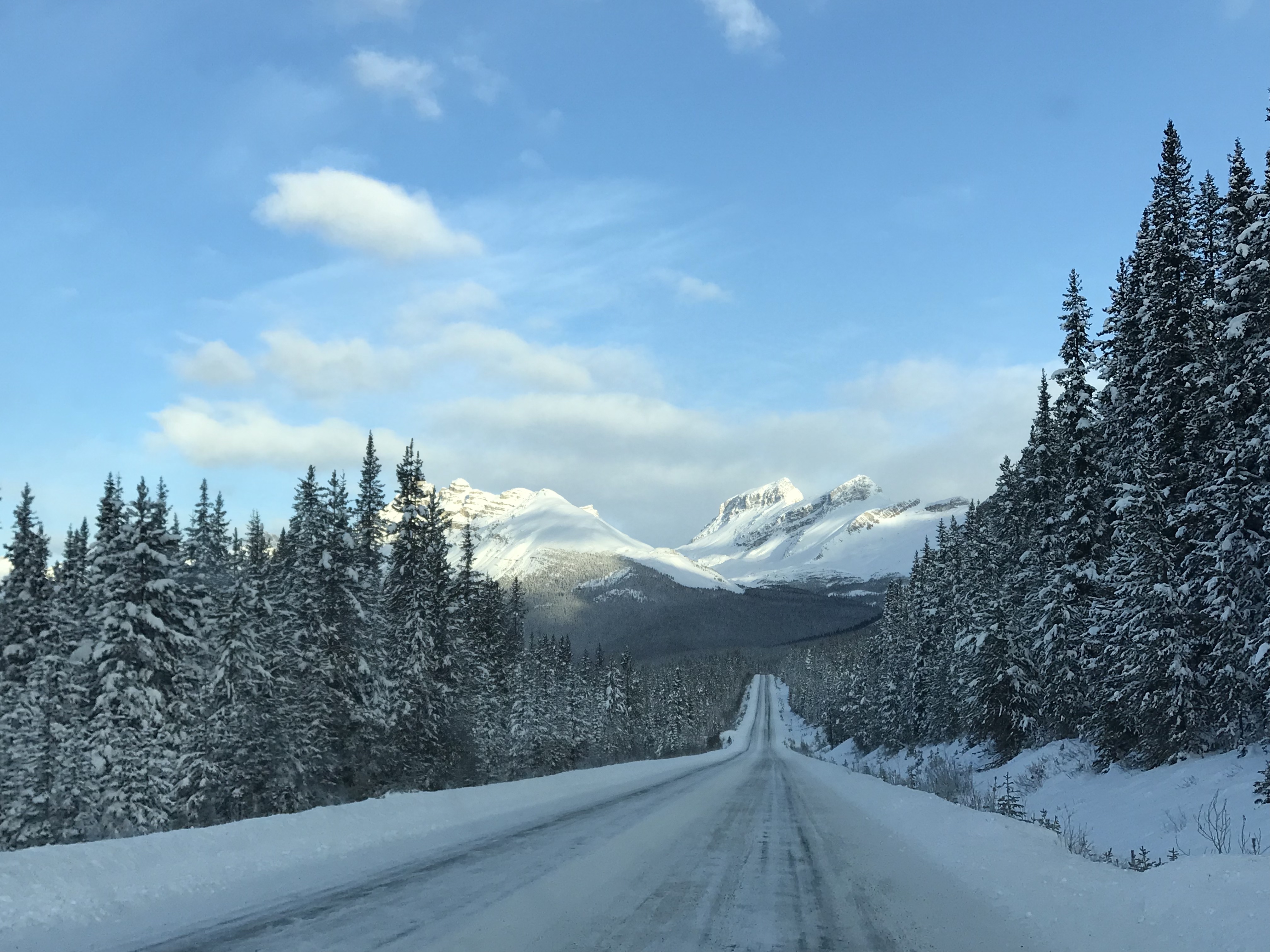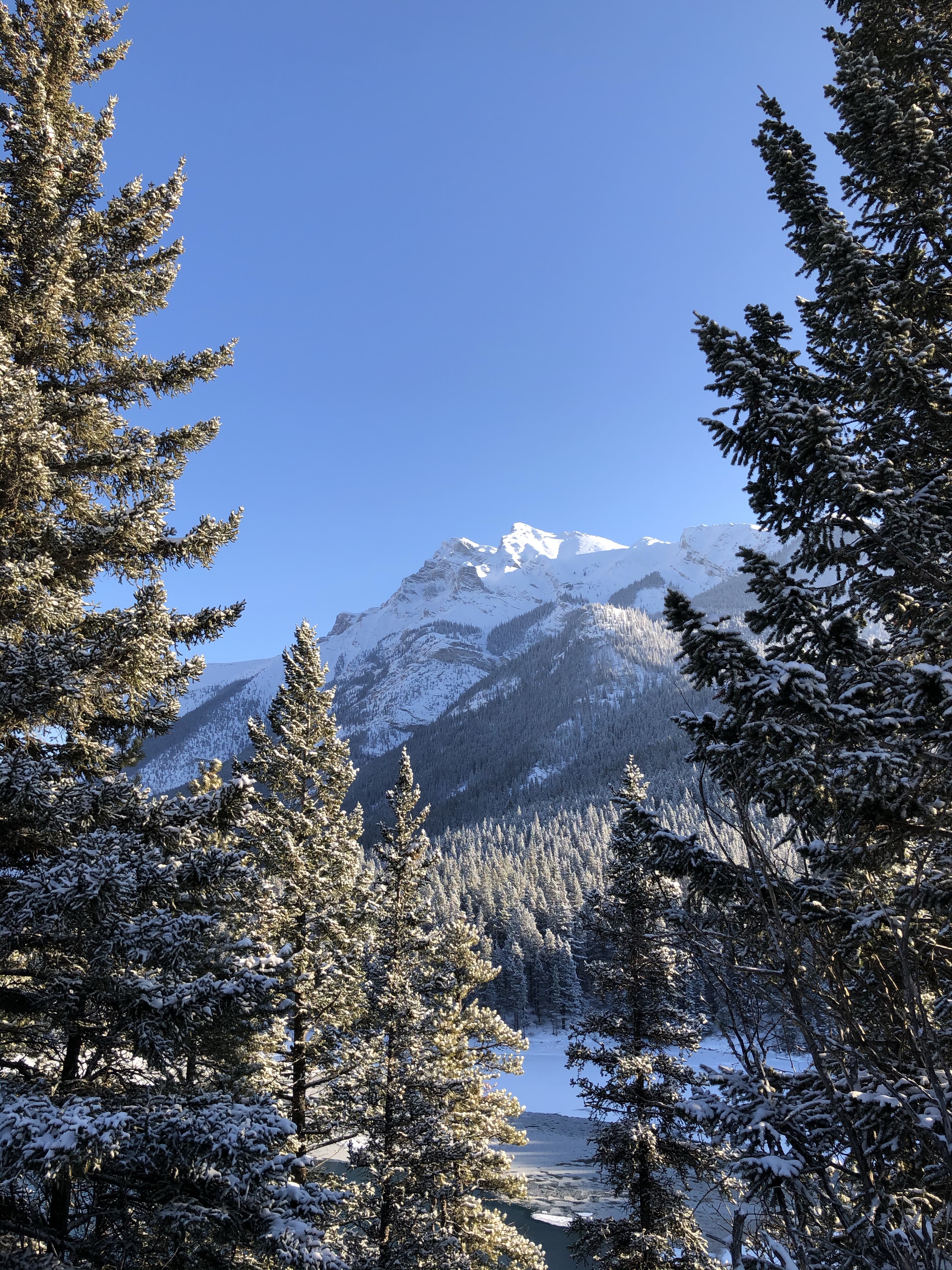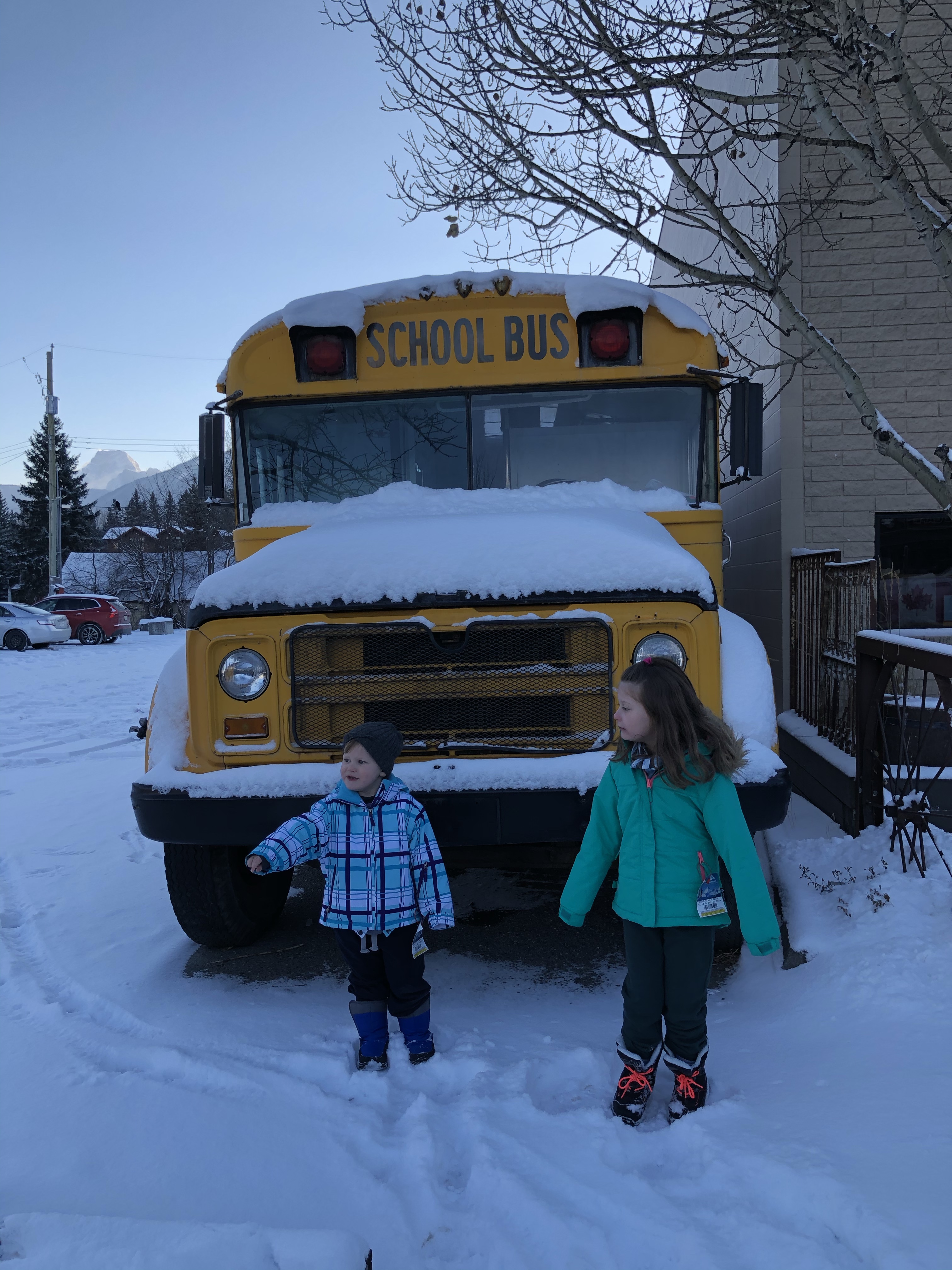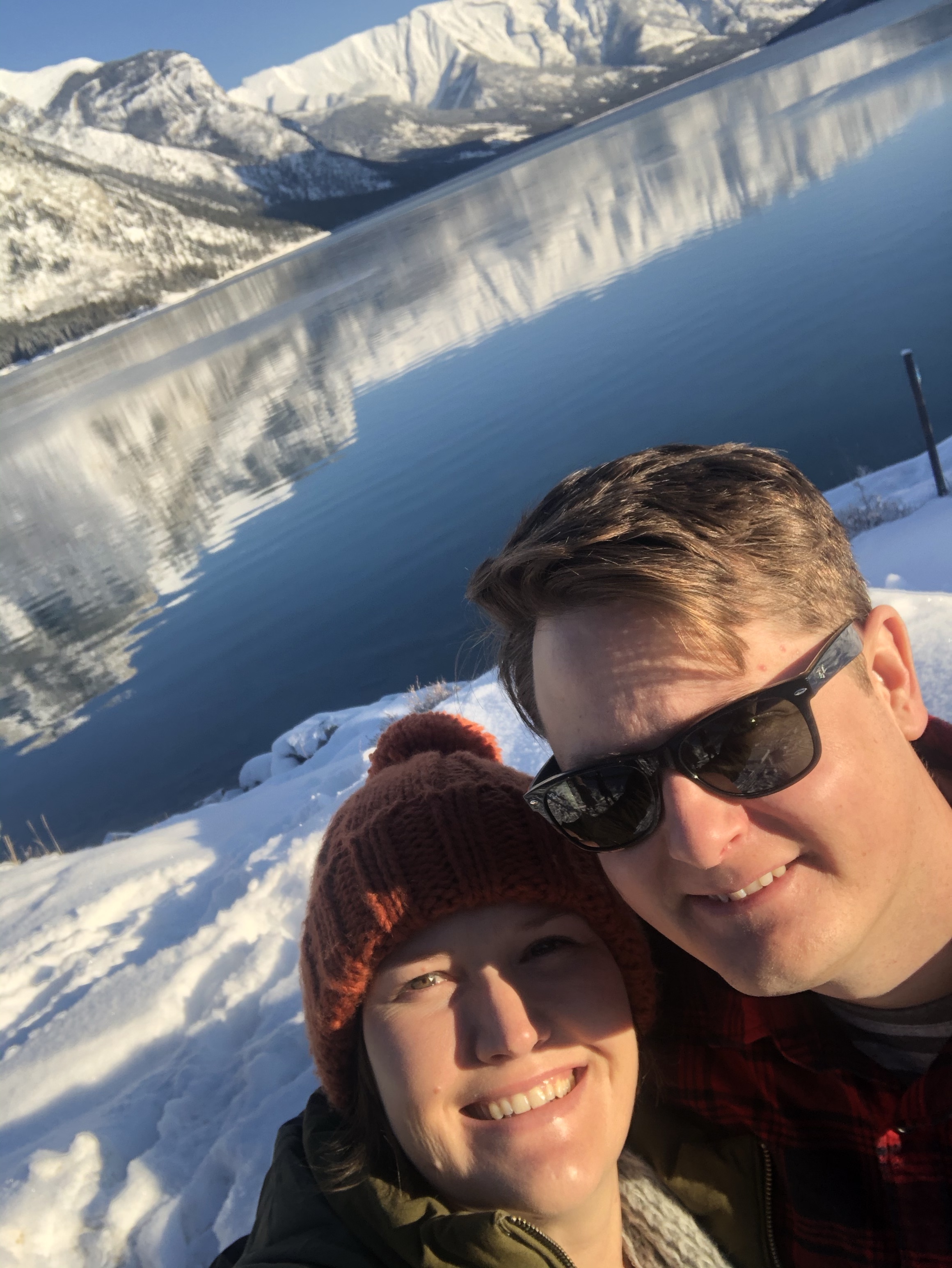 The weather on our last day in Banff (and also our 7th Wedding Anniversary) was clear and beautiful after overnight snow so we took a drive out to Lake Minnewanka and it didn’t disappoint. It’s so difficult to get true photos of the landscape here as the images never do the real thing justice. The downside to visiting Banff National Park during winter is a lot of roads are closed for the season. Many are open for cross country skiiing, snowshoeing and hiking, activities a little too adventurous for us with the kids and no experience so we just stuck to the sites we could access via vehicle.