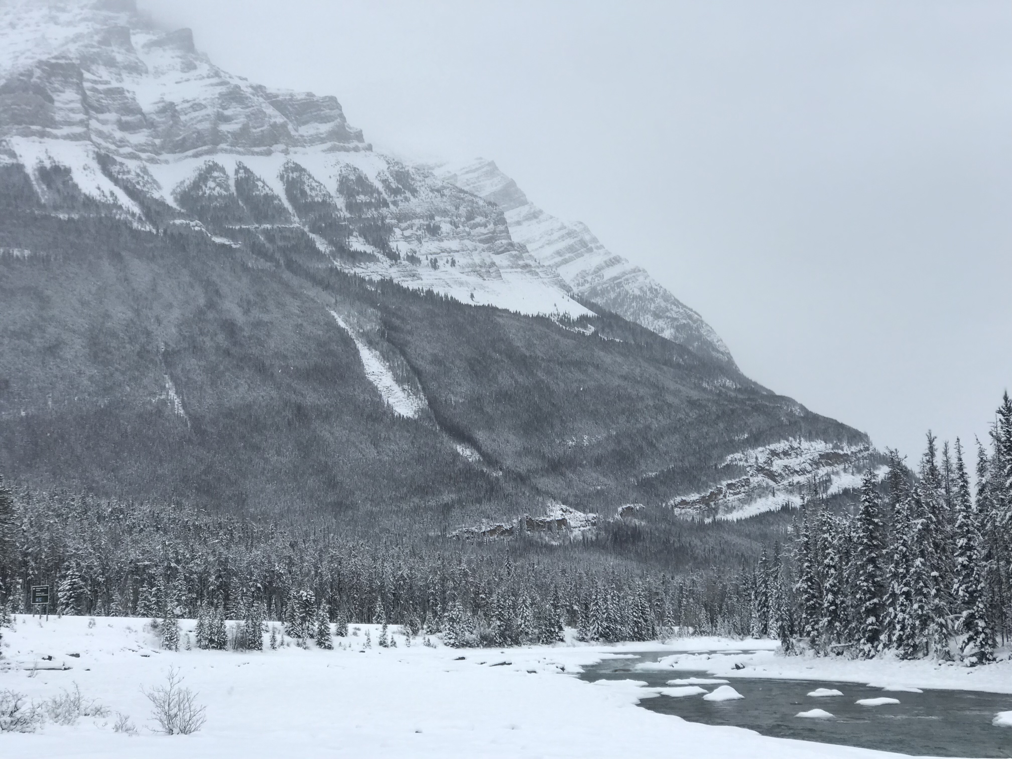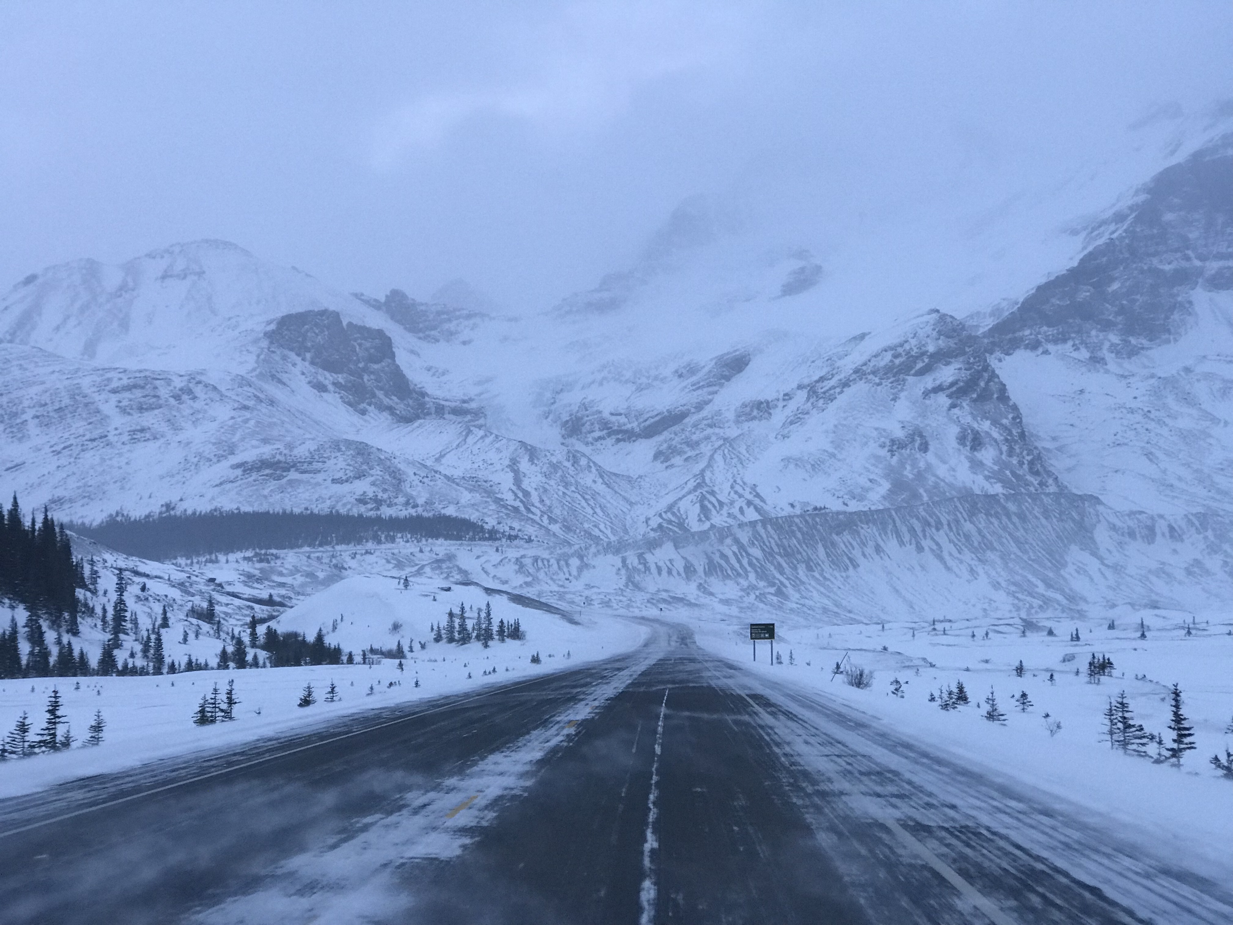 We researched road conditions the previous night and again that morning as Highway 93 – The Icefields Parkway can be treacherous this time of year. The temperature had dropped over night and continued to plummet to -23 as we drove north.