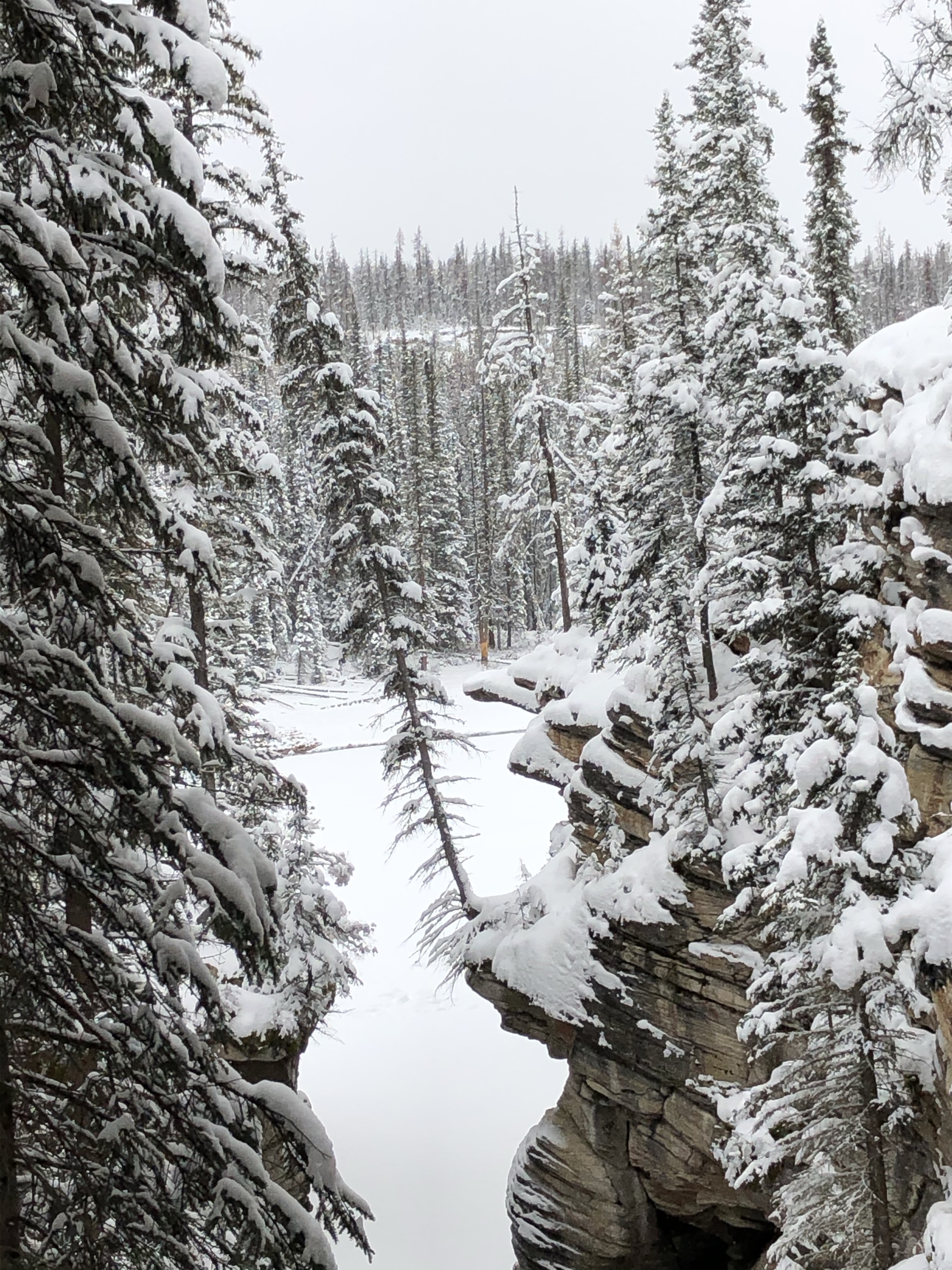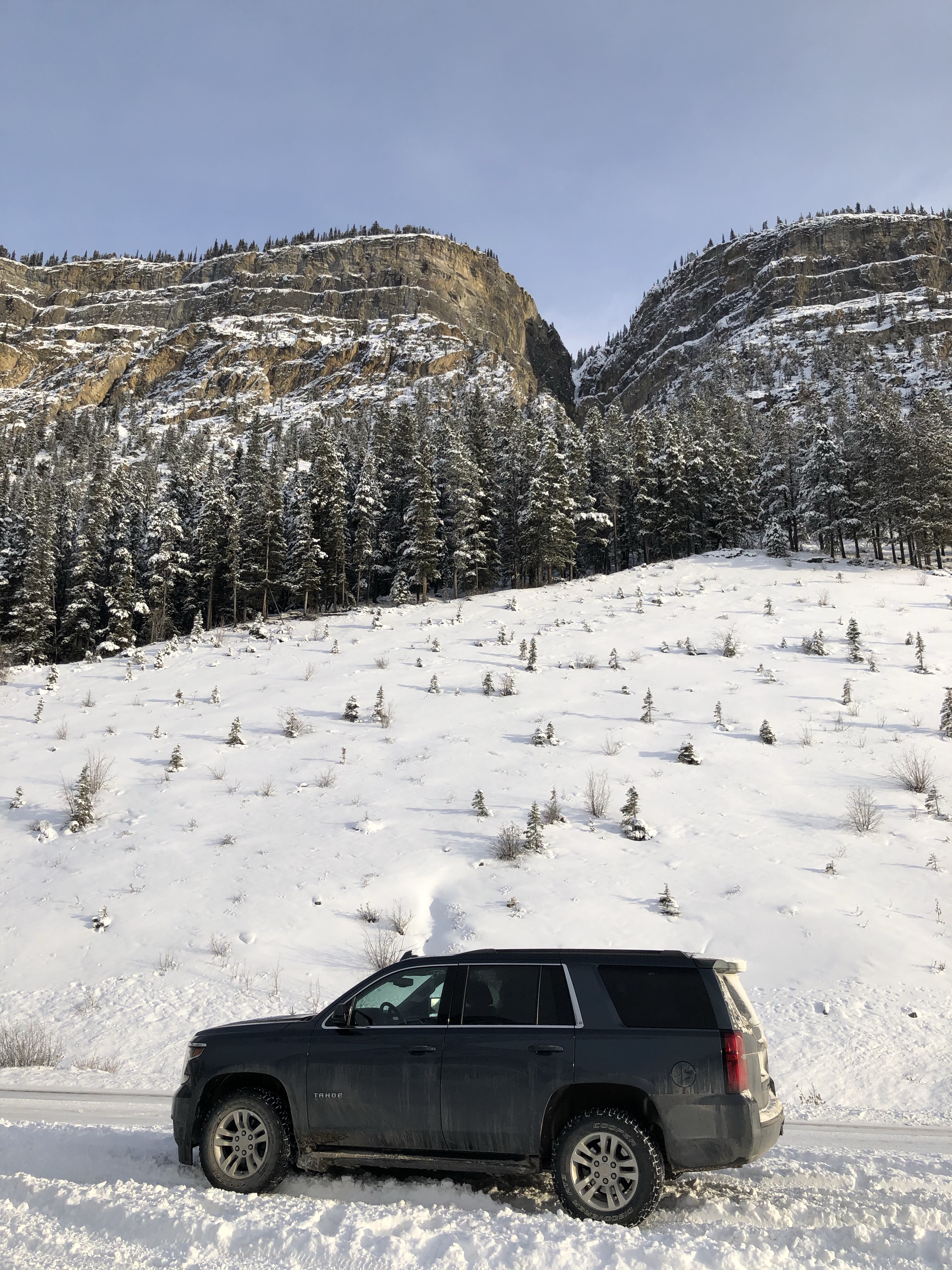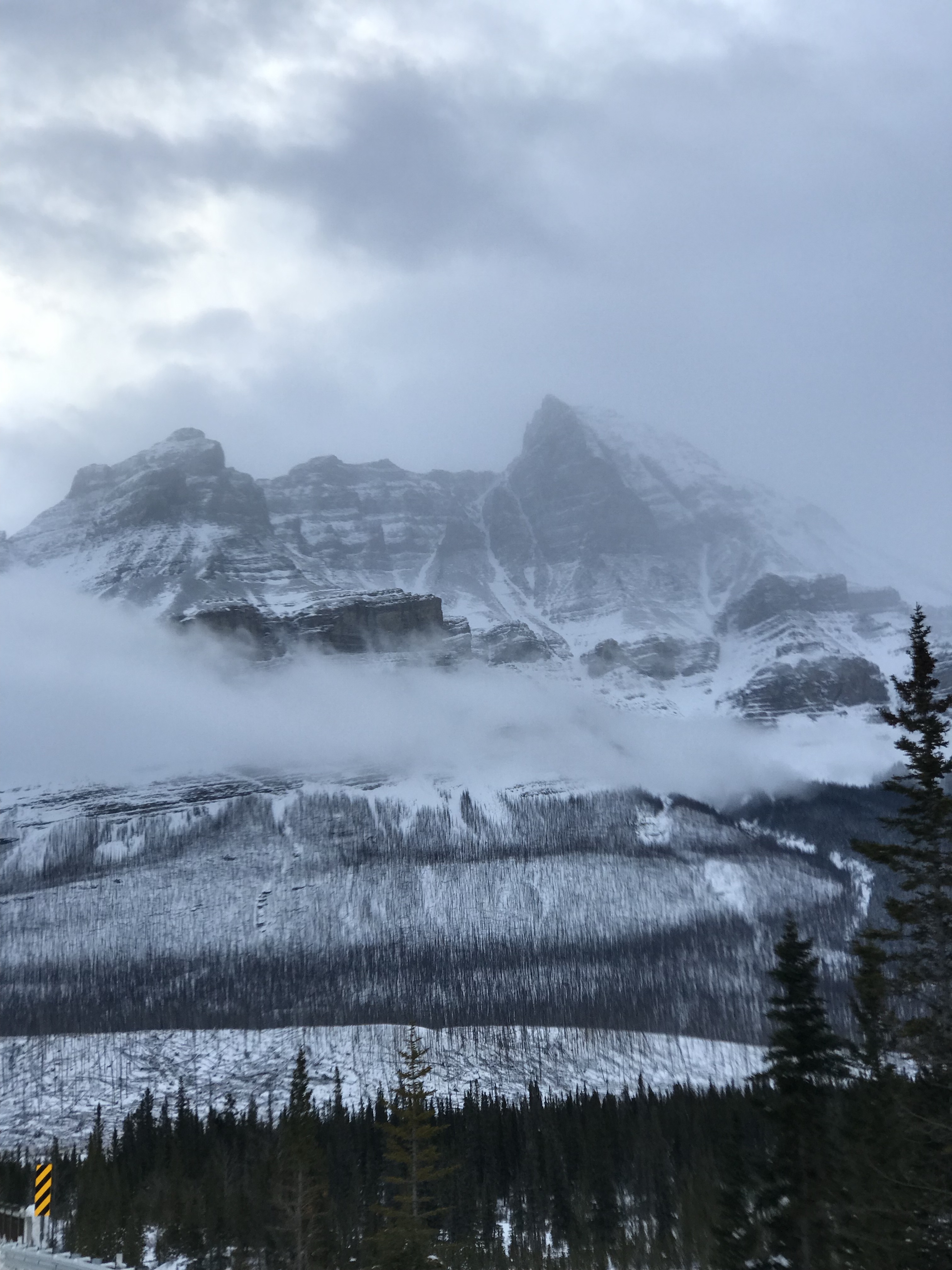 We had no trouble in our 4 wheel drive Tahoe with winter tires and poked along at a slow pace. This particular stretch of road has been rated as one of the top journeys in the world by National Geographic and Lonely Planet and I can vouch that it is definitely one of the most beautiful road trips both in the summer or winter. The 232km road connects Banff and Jasper National Parks winding through soaring rocky mountain peaks, dense deep forests, ancient glaciers, spectacular lakes and sweeping valleys. We wouldn’t have wanted to go any faster as the scenery was breathtaking, even surreal in places. I felt like we were in an episode of Game of Thrones and was expecting to see white walkers stagger out of the icy fog.