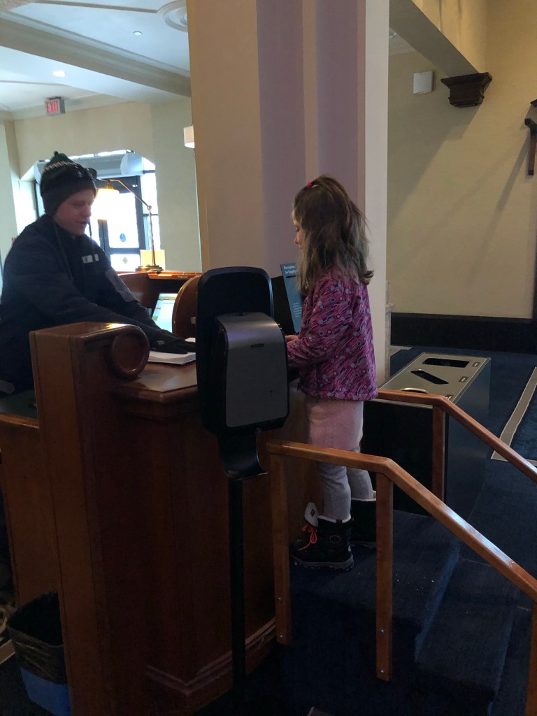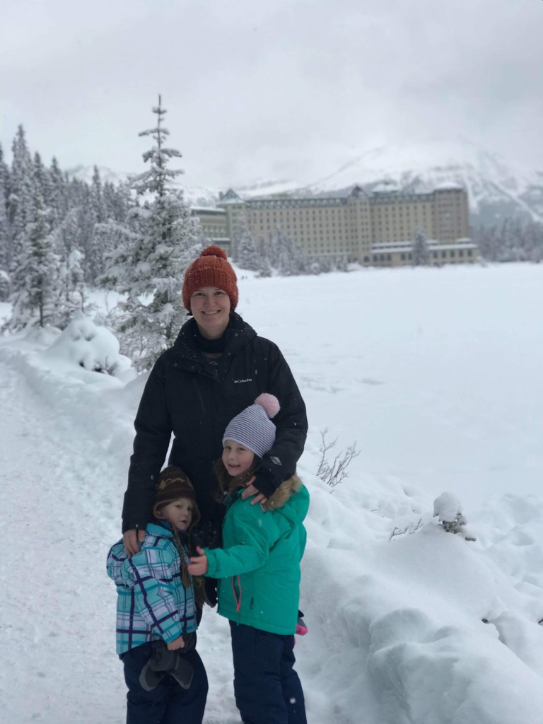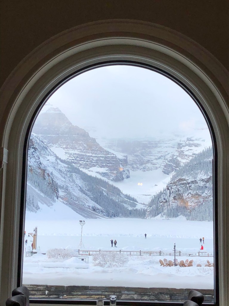We said goodbye to Jasper early driving out into the darkness at 7:30am. After a few days of clear weather the Icefields Parkway was a much easier drive and we made good time arriving at Lake Louise within 3 hours. Although it was still December 12 in Canada the sun was rising on the 13th in Australia and birthday wishes for Shan started rolling in. Lake Louise was still the magical winter wonderland we visited the previous week but this time was special as we drove up to the Chateau to check into what is one of the most glorious hotels in the world. Thanks to Ads highly developed negotiation skills we managed both an early check in and upgrade!! It felt like being in a real life Hallmark Christmas movie as we were met in the grand foyer by the bell hop wearing a name tag – Mr Belvedere! He took the kids over to a special counter for their own check in and after they signed their names into a large leather bound book they were able to pick toys from a huge wooden chest.