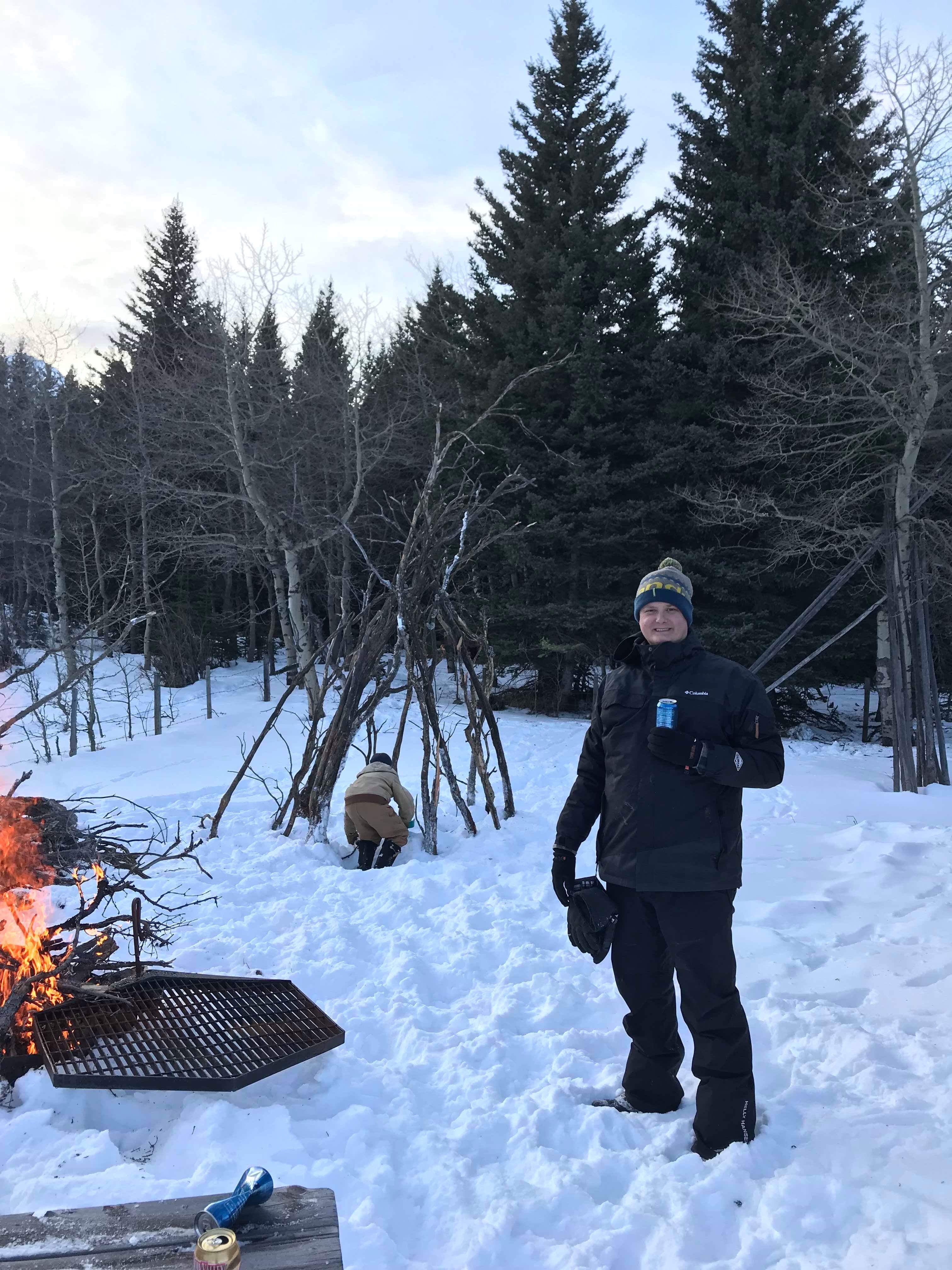 We all warmed up around a campfire at the Maine’s bush cabin with snacks, beers and mulled wine. The party was getting going as we left so we could find our way home before dark and to get back to the farm to finally see Heather Bum Feathers!