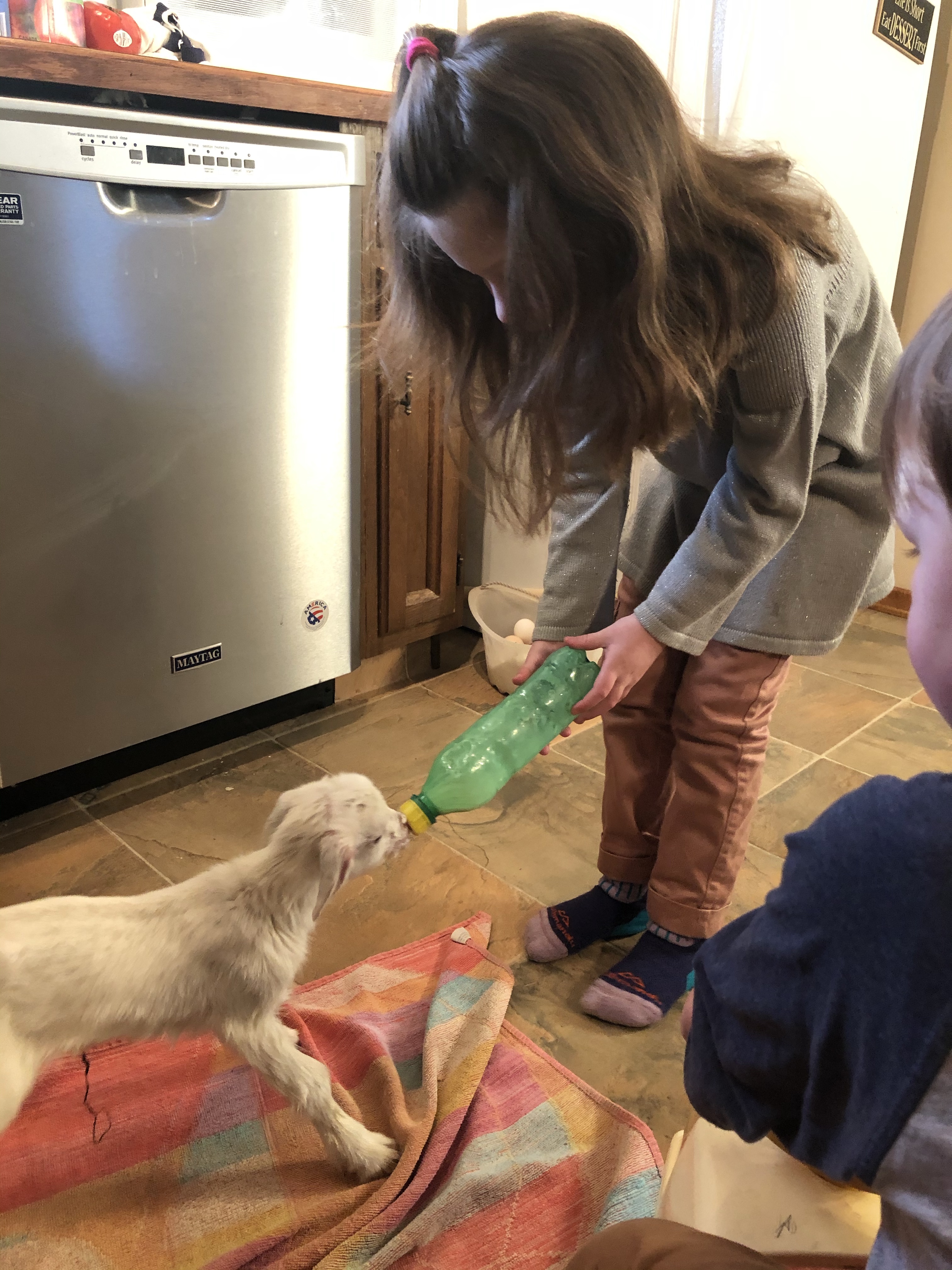 In between days were spent at the farm hanging out with Bum Feathers, Fred, Dianne and Marcus enjoying farm life, playing cards and eating The three kids were inseparable most of the time except for choring time when Marcus would zoom off on his quad, dog in tow to do his morning and evening feeding. One of his goats had triplets a few days before we left. The nanny abandoned the smallest so little Olaf (Aubrey and Lionel’s choice of name) was brought into the house for some warmth and TLC and by morning was recovering and gaining strength. The kids loved taking turns bottle feeding, Lionel particularly.